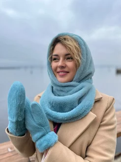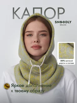 Капор женский зимний шерстяной вязаный капюшон съемный