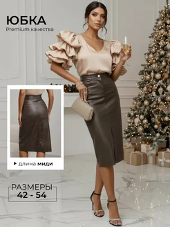 Юбка прямая кожаная миди из экокожи