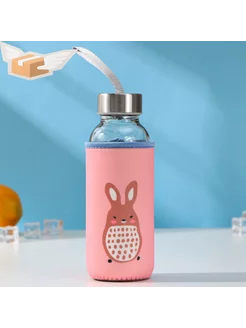 Бутылка для воды стеклянная в чехле Весёлые зверята, 300 мл