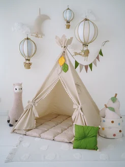 Вигвам шалаш детский с ковриком большой, флажками