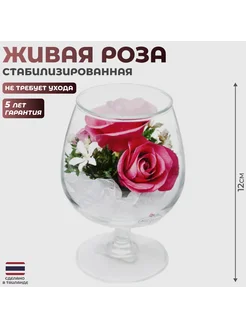 Розовые розы в стекле. (12 x 8.5 x 8.5 см)
