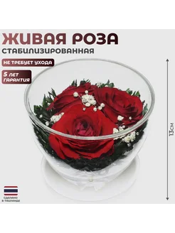 Красные Розы в стекле. (8,5 х 8,5 х 7 см)