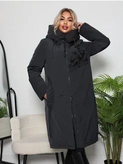 Куртка демисезонная удлиненная с капюшоном оверсайз