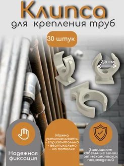 Держатель клипса крепеж для труб d-25 мм (серый, 30 штук)