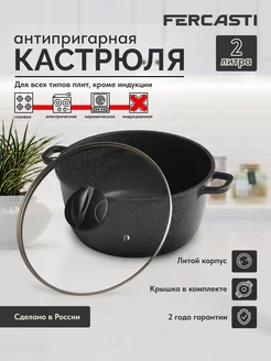 Кастрюля антипригарная с крышкой 2 л