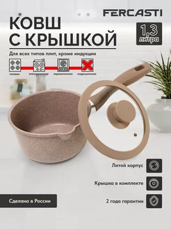 Ковш кухонный с крышкой антипригарный 1.3 л