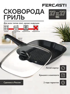 Сковорода гриль с крышкой антипригарная 27 см литая
