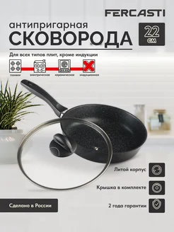 Сковорода с крышкой антипригарная 22 см