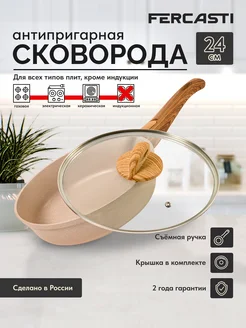 Сковорода антипригарная с крышкой со съемной ручкой 24 см