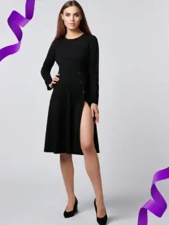 Платье женское черное повседневное с длинным рукавом лапша о…
