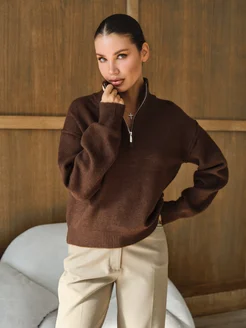 Свитер вязаный с горлом на молнии