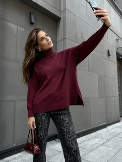 Свитер вязаный с горлом удлиненный