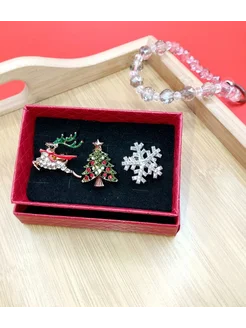 Набор брошек новогодних в виде оленя, ёлки и снежинки