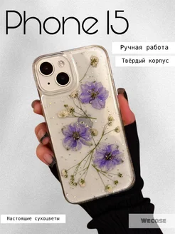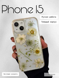 Чехол на iPhone 15 ручной работы с сухоцветами