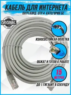 Патч корд, интернет кабель 15 метров, UTP 4, категория 5e