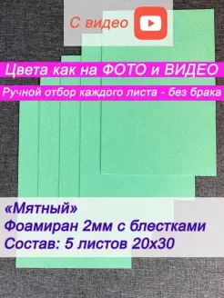 Фоамиран глиттерный мятный бумага А4 цветной картон блестки