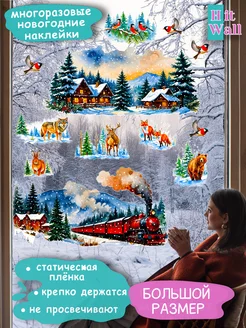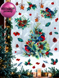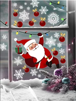 Наклейки новогодние на окна многоразовые большие