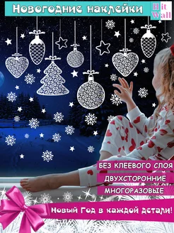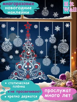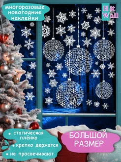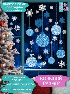 Многоразовые наклейки новогодние снежинки и шары