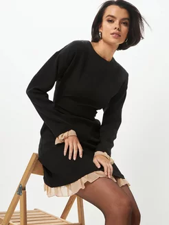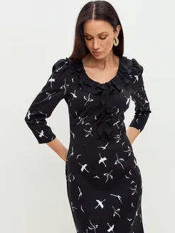Платье офисное мини с рюшами
