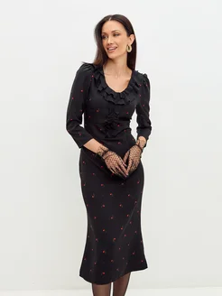 Платье женское черное вечернее миди в офис
