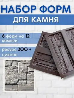 Формы для кирпича из гипса и бетона Древесный скол - 6 штук