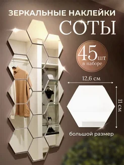 Зеркальные наклейки на зеркало соты на стену 45 интерьерные