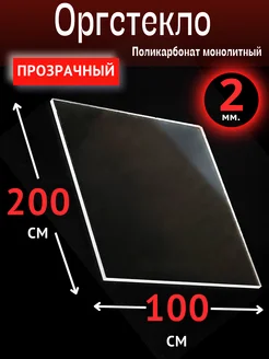 Оргстекло. Монолитный поликарбонат 2мм. 2,0х1,0м. Прозрачный