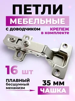 Петли мебельные с доводчиком для кухни в шкаф 16 шт