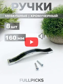 Ручки для мебели на кухню черные 128 мм - 160 мм 8 шт