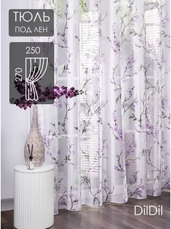 Готовый тюль 250х270 под лен в спальню гостиную цветочек