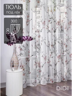 Готовый тюль 300х230 под лен в спальню гостиную цветочек