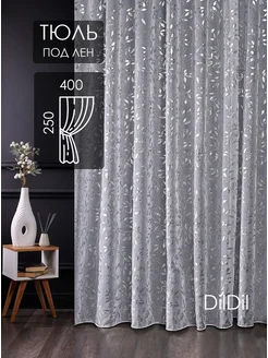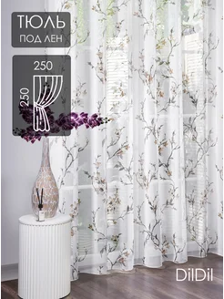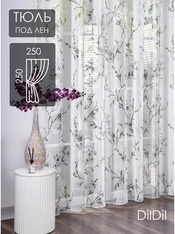 Готовый тюль 250х250 под лен в спальню гостиную цветочек