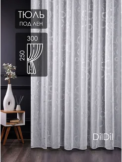 Готовый тюль 300х210 под лен в спальню гостиную цветочек
