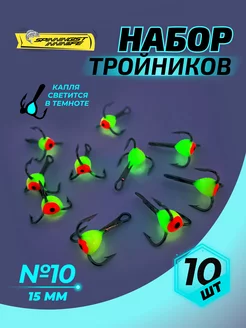 Крючки рыболовные тройные с фосфорной каплей номер 10