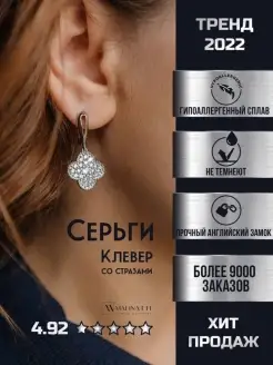 Серьги бижутерия Серьги клевер Четырёхлистный клевер Нарядны…