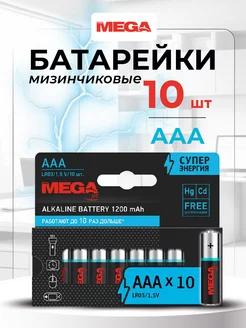 Батарейки мизинчиковые, ААA, алкалиновые, набор 10 шт