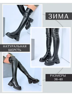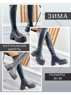 Ботфорты зимние на платформе утепленные еврозима на каблуке