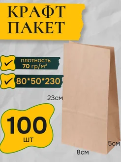 Крафт пакет бумажный упаковочный 8*5*23см 100штук