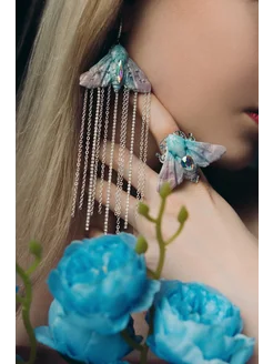 Серьги мотыльки ручной работы голубые