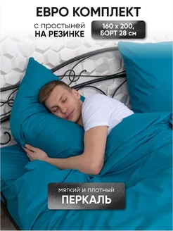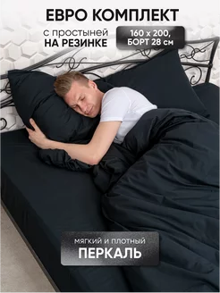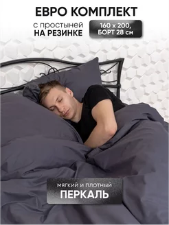 Постельное белье Евро на резинке 160х200 Перкаль