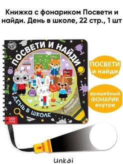 Книжка с фонариком Посвети и найди. День в школе. 22 стр