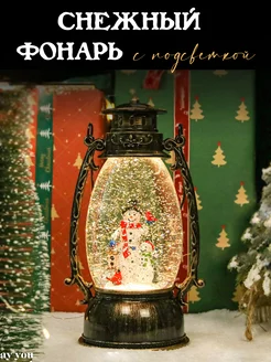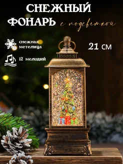 Музыкальный новогодний фонарь светильник со снегом 2026