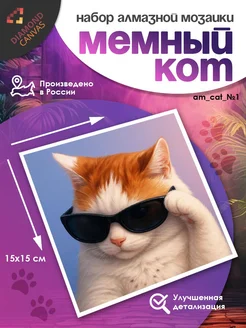 Алмазная мозаика маленькая набор мемный кот 15х15