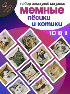 Алмазная мозаика набор Мемные коты и собаки 10 в 1