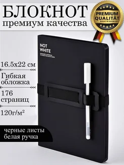 Блокнот с черными листами и белой ручкой, 165*220мм