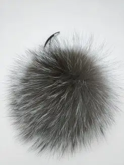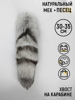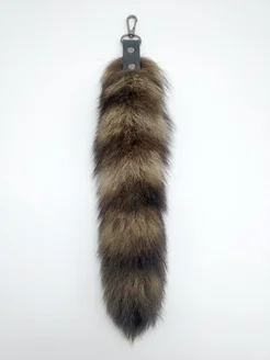 Брелок меховой серый хвост на карабине 30-35 см полосатый