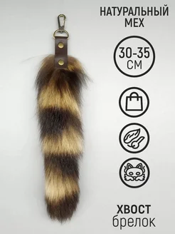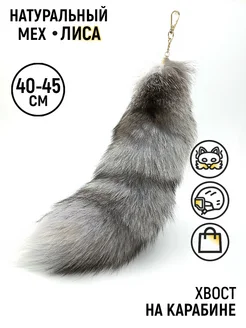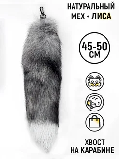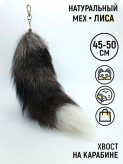 Меховой брелок хвост лисы на карабине 45-50 см пушистый