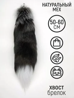 Мега меховой лисий хвост брелок чернобурка 50-60 см