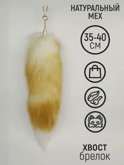 Брелок меховой рыжий золотой хвост лисы 40-45 см на карабине