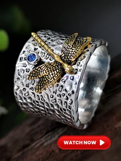 Кольцо вечернее широкое стрекоза со стразами 2025